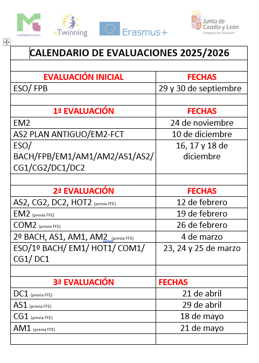 CALENDARIO DE EVALUACIONES ORDINARIAS 2025-2026