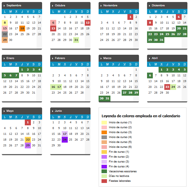 Publicación del CALENDARIO ESCOLAR referente al curso 2025/26