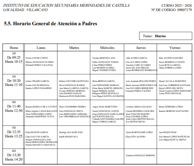 Jornada completa en el centro, parte de la cual es de dedicación al Equipo Directivo. |